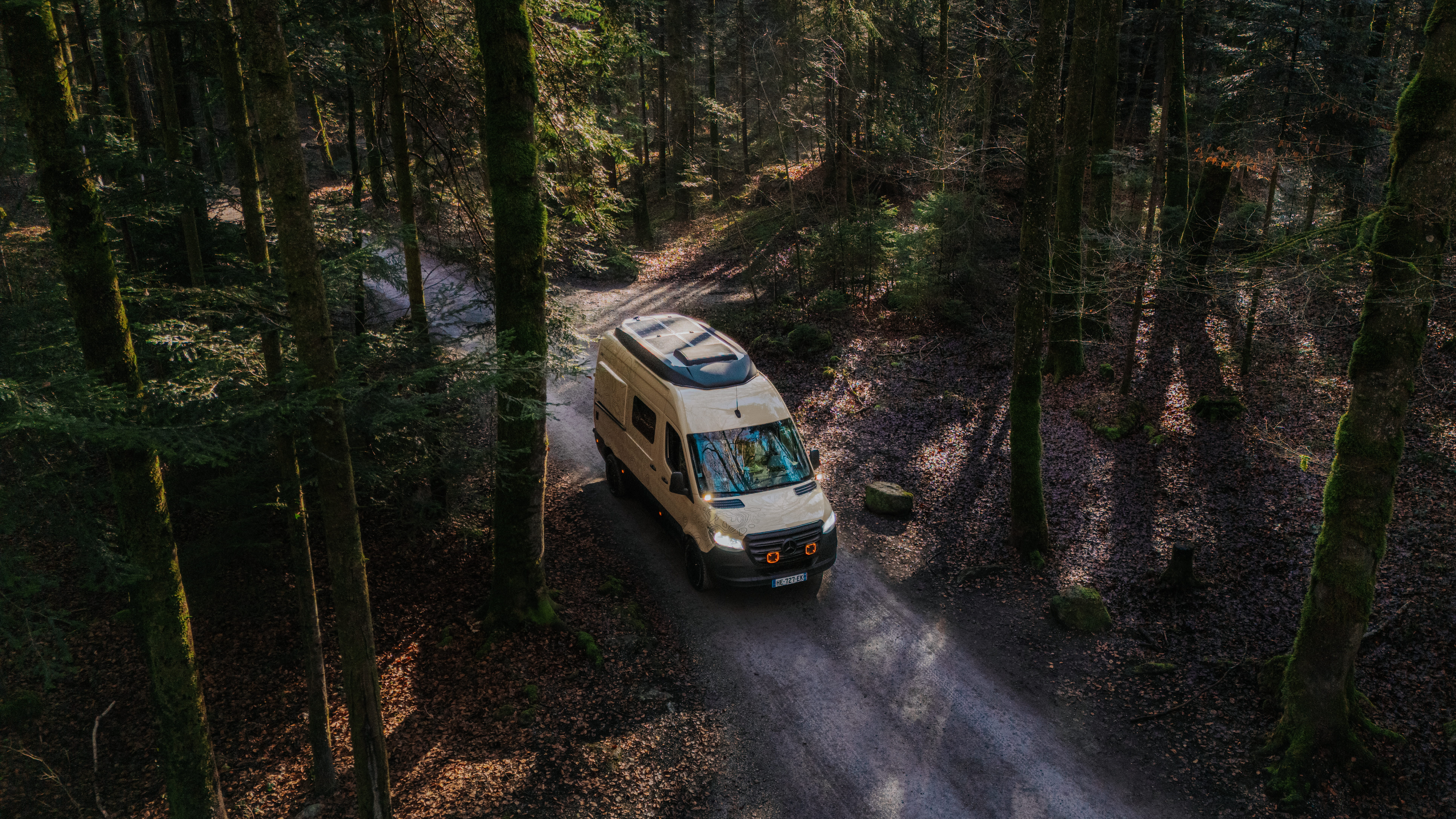 Avec le temps, l’envie de passer sur un véhicule plus grand et plus confortable s’est naturellement imposée. Nous avons donc choisi un Mercedes Sprinter en version propulsion, avec l’idée de créer un van parfaitement adapté à notre manière de voyager.